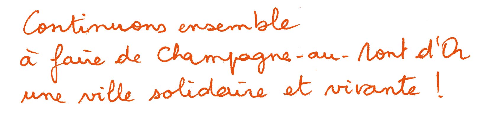 Avec vous et pour vous, je veux continuer ce chemin exigeant et passionnant : consolider ce que nous avons réalisé, relever les défis à venir et continuer à faire de Champagne une ville où il fait bon vivre.